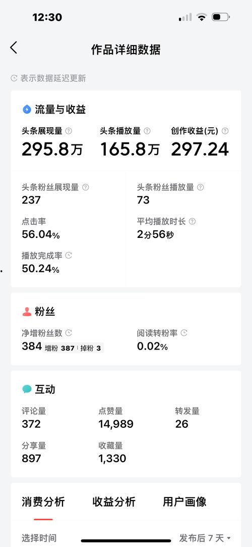这里,你就能看到自己所有作品的收益情况了。不过,需要注意的是,收益数据可能会有一定的延迟,通常会在发布后24小时内更新。